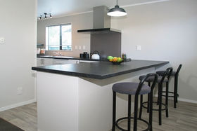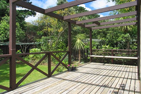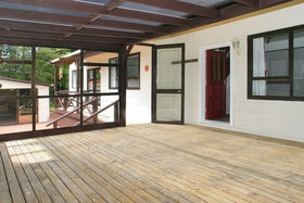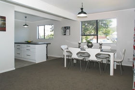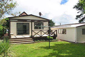 Sited on a flat, sunny landscaped and fully fenced section the house is comprised of 3 bedrooms, 2 living areas, new bathroom and kitchen, large all weather deck and a garage with a workshop/sleep-out set up.